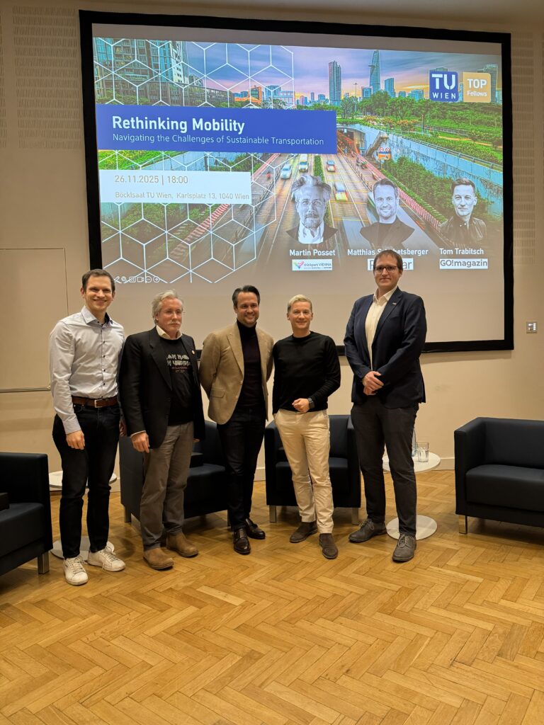 Rethinking Mobility @TU Wien (Böcklsaal), 26.11.25, 18 Uhr: Podium zu nachhaltiger Mobilität mit Expert:innen aus Industrie & Medien